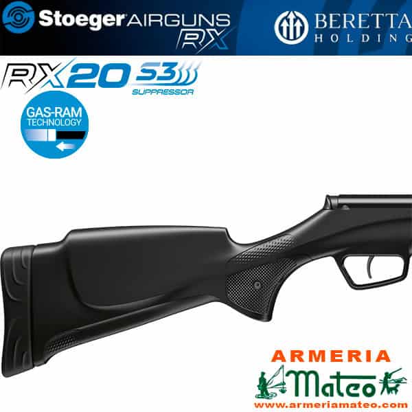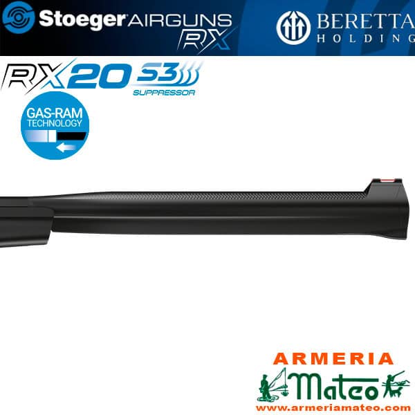 La Stoeger RX20 S3 integra el moderador de sonido S3 y su diseño vanguardista, gracias al sistema MGS se puede personalizar el aspecto de la carabina. Incorpora sistema Gas-Ram Technology.