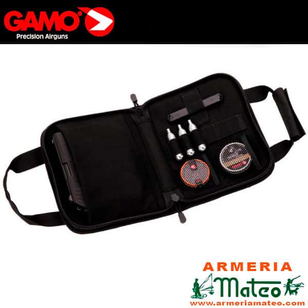 Funda de color negro realizada en poliéster con interior de tricot diseñada especialmente para transportar y guardar su pistola GAMO. Incorpora compartimentos especiales para llevar las bombonas de CO2, el cargador de la pistola así como los balines. Puede usarse también para transportar armas de fuego reales.
