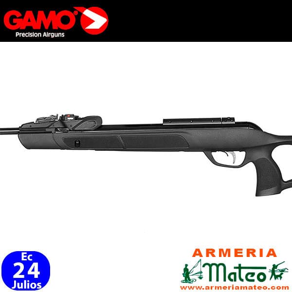 Este modelo presenta la Tecnología 10x Quick shot® de Gamo, que permite al tirador abatir el cañón y disparar, ganando el tiempo de coger otro balín y tener que introducirlo en la carabina cada vez que se dispara, convirtiéndose en la carabina de alta potencia más rápida del mercado.