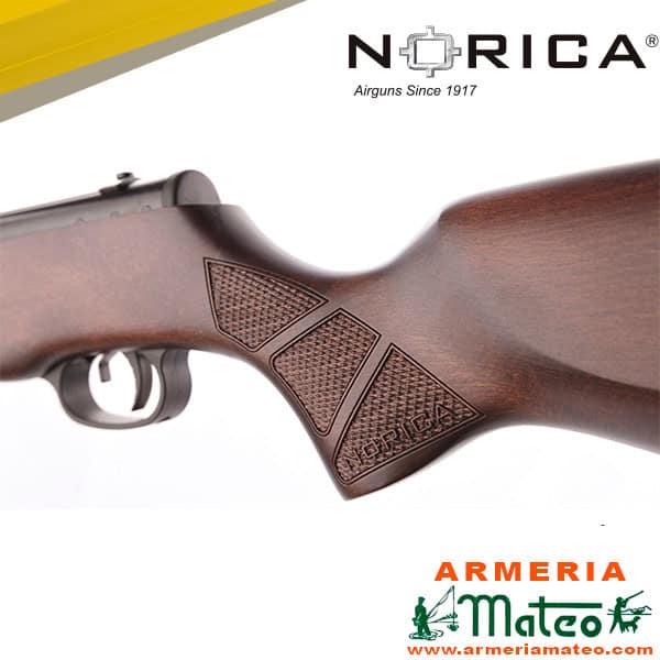 Gracias al trabajo realizado en el departamento I+D de Norica, se ha conseguido integrar el sistema neumático GRS (Gas Ram System) sustituyendo el muelle, mejorando notablemente el rendimiento del arma.
