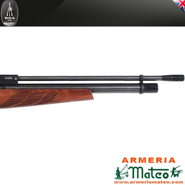 La  BSA BUCCANER SE, combina la tradición de las carabinas de PCP inglesas y un precio contenido. Máxima precisión y potencia gracias a su cañón flotante. Cargador multitiro (10 balines). Disponible  en 4.5 y 5.5. Depósito de aire con manómetro, presión máxima 250 bars.