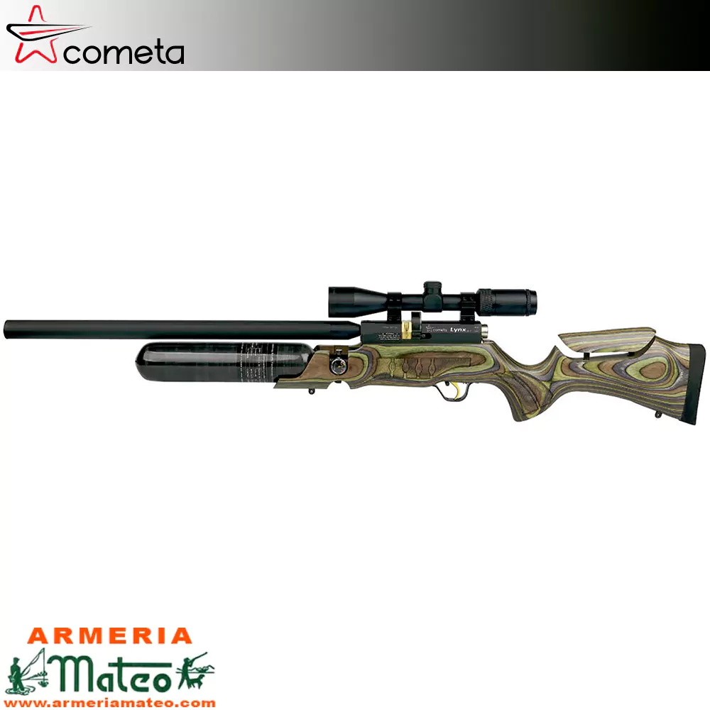 La Carabina Cometa Lynx SPR F300B es un rifle de aire comprimido de alta gama, diseñado principalmente para tiro deportivo y de precisión. Fabricada por la reconocida marca española Cometa, destaca por su calidad de construcción, rendimiento y fiabilidad. Este modelo utiliza un sistema PCP (Pre-Charged Pneumatic), que le permite ofrecer una potencia constante y disparos suaves gracias a un depósito de aire comprimido recargable.