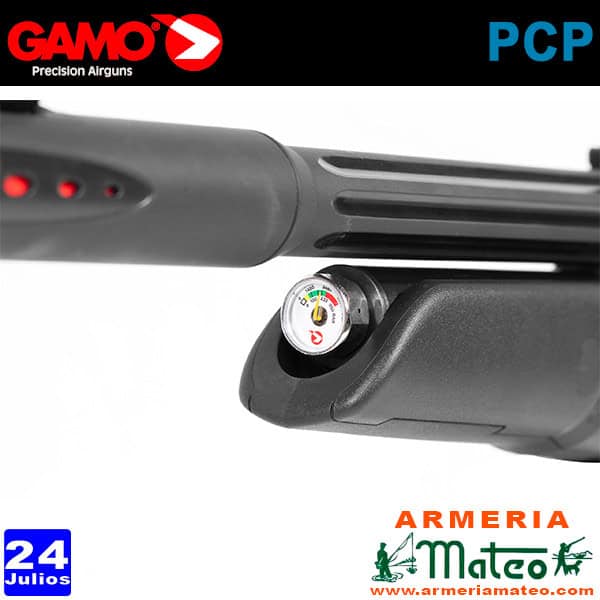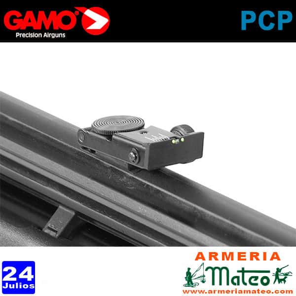 Nueva Carabina PCP de Gamo, fabricada íntegramente en España bajo los mas estrictos estándares de calidad. Incorpora moderador de sonido Whisper Fusión, alza y punto de mira y carril para montaje de visor. Energía inicial 24 julios.