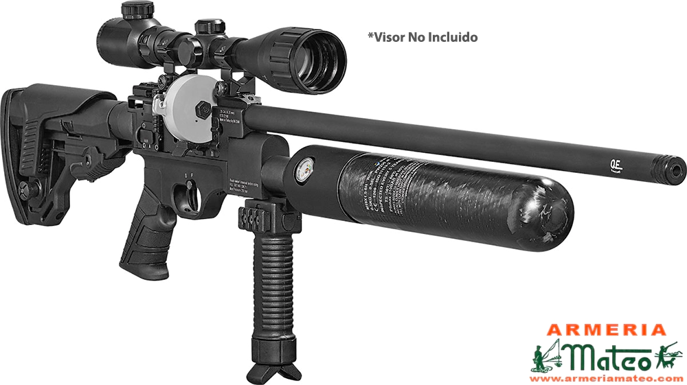 - Carabina de Aire Pre-comprimido (PCP) de acción de cerrojo lateral, carga manual.