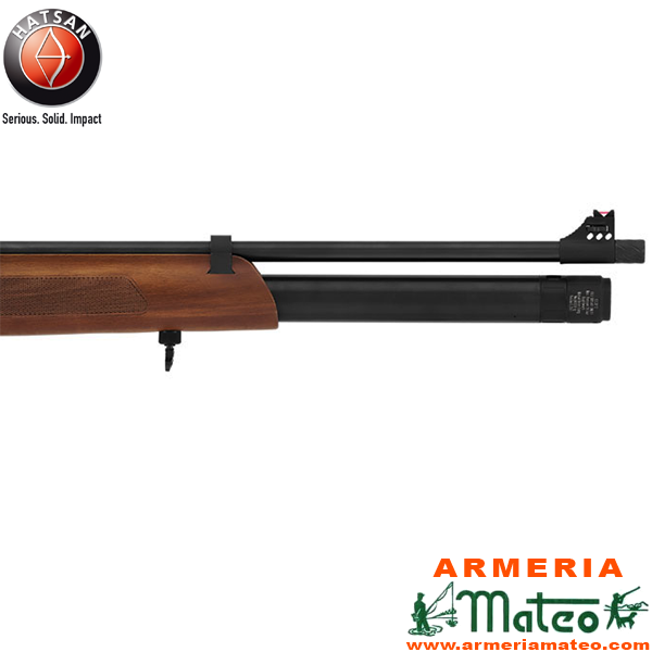 Carabina Hatsan Galatian II de diseño tradicional con elegantes maderas de nogal, receptor acabado en nikel blanco y refinados grabados.