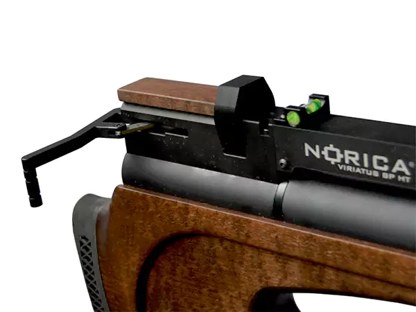 Norica lanza al mercado el modelo Viriatus BP HT BLACK WOOD (culata de madera vaporizada lacada en negro), con una configuración ideal para la práctica de la caza y el tiro deportivo. El sistema de carga de palanca lateral proporciona una comodidad y ligereza asombrosas. La precisión está garantizada gracias al cañón Lothar Walther con sistema de choke y 450 mm. de longitud. Regulador de presión tarado a 135 Bar (1.959 PSI) y presión máxima de llenado de depósito a 250 Bar (3.620 PSI). El tirador puede visualizar fácilmente la presión en el manómetro WIKA con código de colores. Además, el cañón enfundado integra un supresor de sonido que mantiene la Viriatus BP HT sorprendentemente silenciosa. También incluye una rosca ½ UNF para el montaje de un supresor adicional. El nuevo diseño de la culata proporciona un perfecto acoplamiento al tirador. Incluye cheek piece para mayor comodidad de encare y portafusiles para montaje de una correa o bípode.