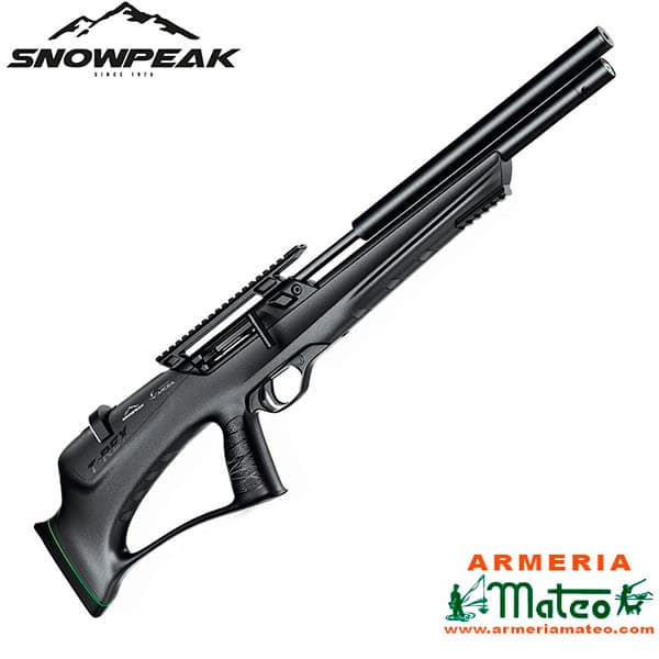 La Carabina Arcea-Snowpeack T-Rex destaca por novedoso diseño, carrillera regulable en altura y la posibilidad del cambio de horientación del cerrojo para diestros o zurdos. Vávula reguladora instalada.
