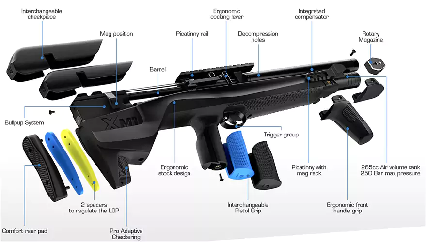 La Carabina XM1 Bullpup ofrece una dimensión completamente nueva de la experiencia de la marca. El XM1 Bullpup concentra la esencia de lo experimentado y desarrollado durante los últimos 5 años, con una mejora sustancial en todas las dimensiones, diseño, ergonomía, entrega de potencia, rendimiento del supresor y precisión.
