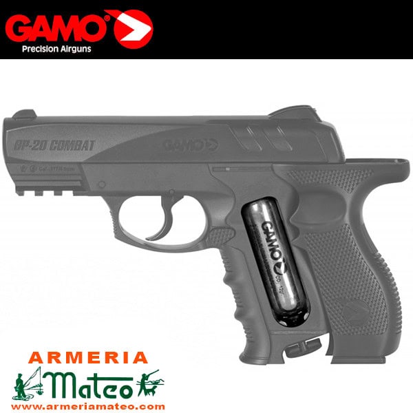 La GP20 de Gamo es una pistola versátil y compacta de CO2 BBs recomendada para el plinking y las disciplinas recreativas. Está alimentado por una cápsula de CO2 de 12gr que se encuentra dentro de la empuñadura. Agarre ambidiestro y antideslizante con acabado de goma texturizada.