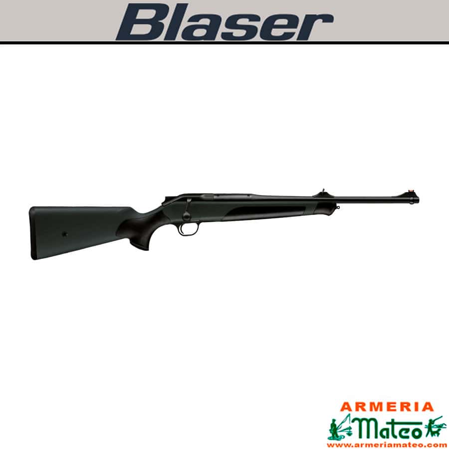 Blaser R8 Professional Tracking. Especialmente diseñado para el seguimiento o rastreo. Culata verde con inserciones de elastómero negro en pistolet y guardamanos. Cañón corto (50 cm/19,7″), anillas porta fusil en la boca del cañon y en el lateral de la culata. Elementos de puntería de fibra óptica HIVIZ®.