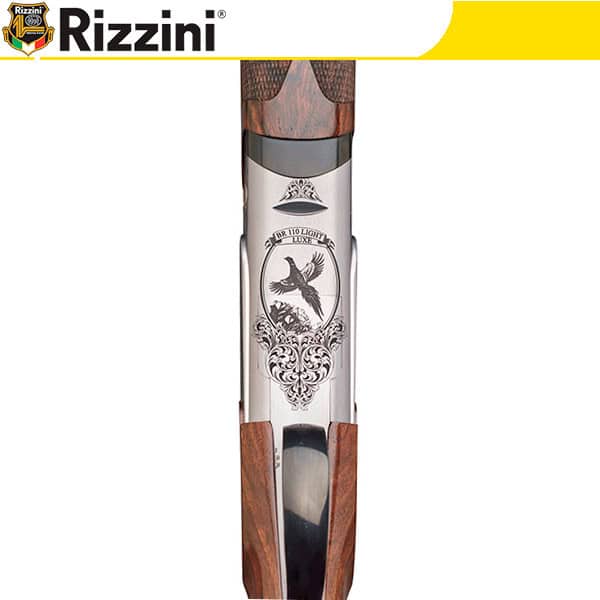 La superpuesta BR110 Light Luxe, es una escopeta de acción ligera, con báscula de ergal de alta densidad y refuerzo de titanio, anodizada en gris y elegantes grabados arabescos en los costados y faisán en vuelo en su parte inferior.
