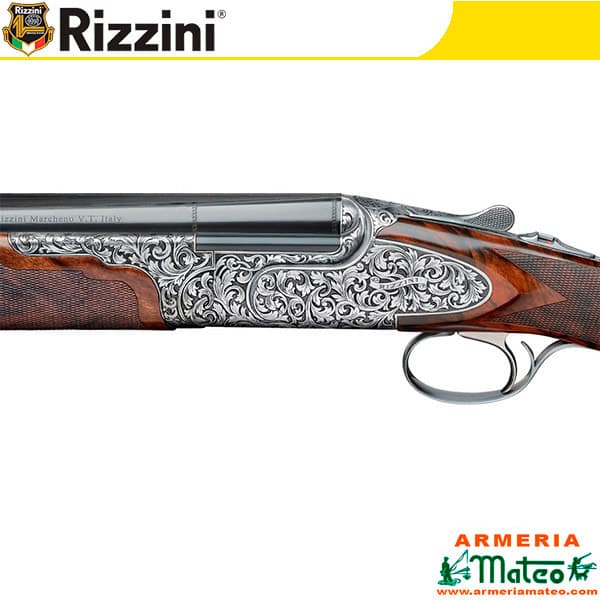 Culata  tipo Príncipe de Gales de nogal turco grado 4, guarda larga, guarda grabada a mano, picado fino tipo 26 LPI y cruz tipo protuberancia grabada a mano.