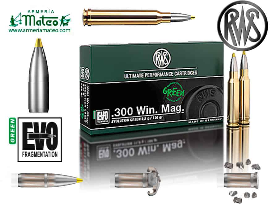 MUNICION RWS EVO GREEN 300 WIN MAG 136 GR