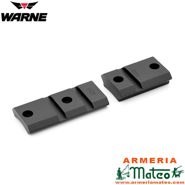 Bases Warne de 2 piezas en aluminio 6061 con ancho Weaver (22 mm) y perfil bajo. Permite un sistema flexible de visores, con la posibilidad de desmontaje rápido de las anillas, sin perder la precisión del calibrado.