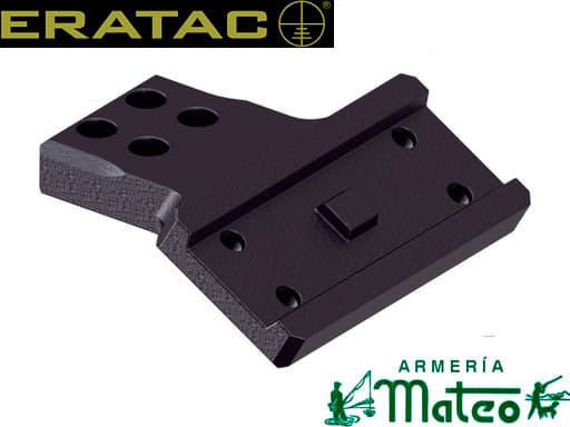 Este adaptador le permite conectar una mira de punto rojo Aimpoint al soporte del visor del rifle ERATAC mediante la interfaz UNIVERSAL. El desplazamiento lateral de 20° garantiza una visión clara más allá de la torreta de la mira telescópica.