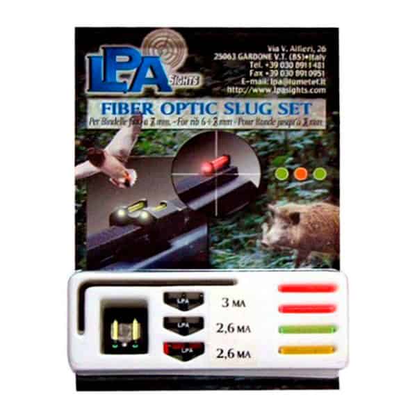 Set de puntos y alza de fibra óptica para escopeta con bandas de 6 a 8 mm.