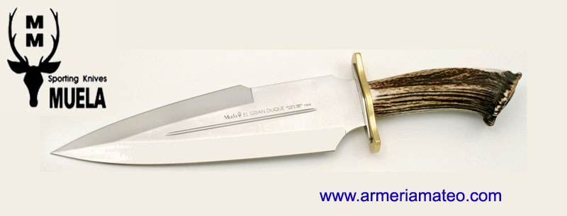 Cuchillo con puño madera rosewood con cruceta y pomo de acero inoxidable.