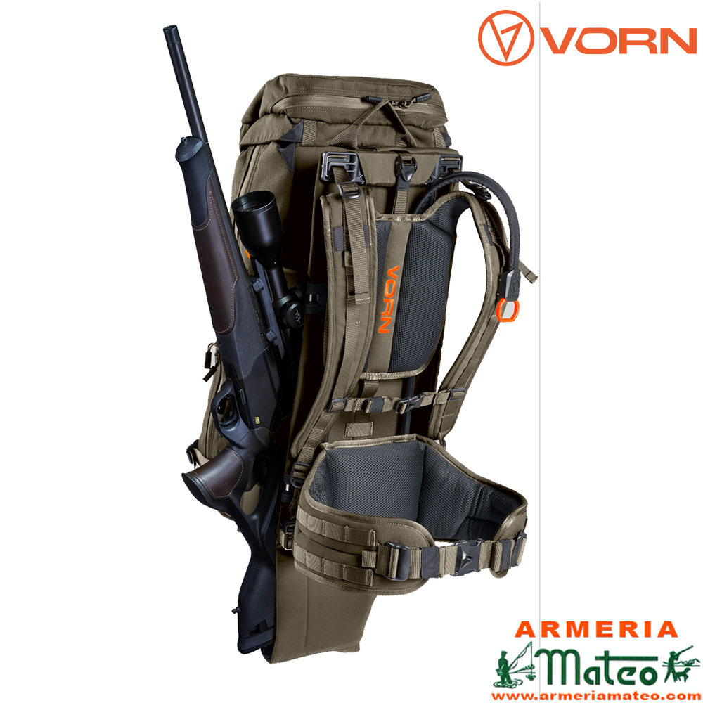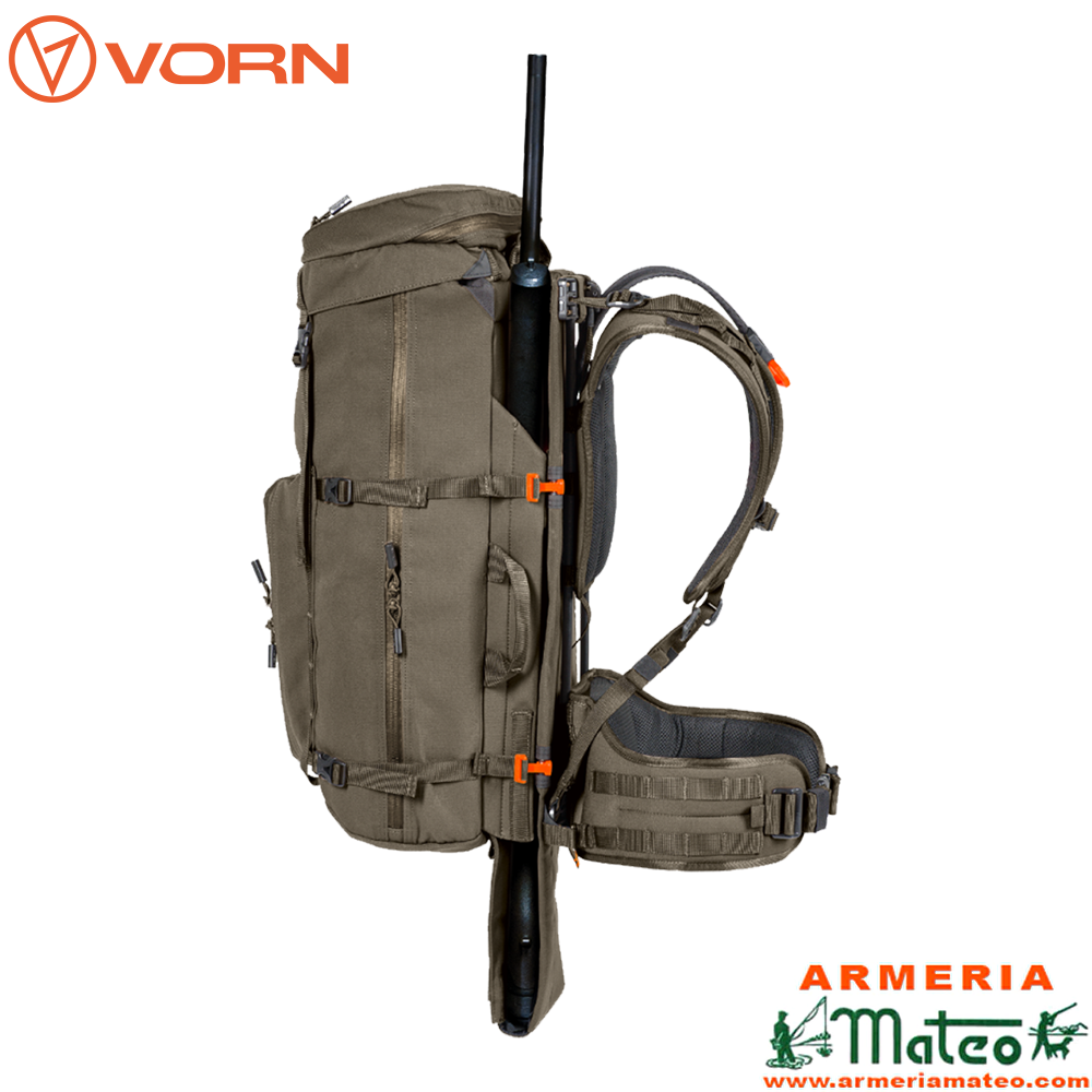 La Vorn EV45 es una mochila de caza/táctica de alto rendimiento con capacidad de 45 litros, diseñada para llevar equipo completo y transportar el rifle de manera segura con acceso rápido gracias a su sistema patentado Quick Rifle Release (QRR). Está construida con materiales duraderos y resistentes al agua, incorpora un armazón reforzado para mejor estabilidad y distribución del peso, correas ajustables cómodas y múltiples compartimentos para organización y accesorios. Es ideal para jornadas largas en el campo o actividades al aire libre donde se necesite cargar equipo pesado con comodidad.