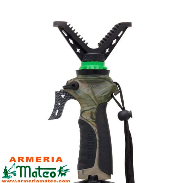 Monópode con gatillo: con una sola mano y presionando el gatillo, se podrá ajustar el monopode a la altura deseada. Es ligero y de altura ajustable. Es ideal para el apoyo del arma de pie, sentado e incluso de rodillas. Adaptable al uso de cámaras, prismáticos y catalejos.