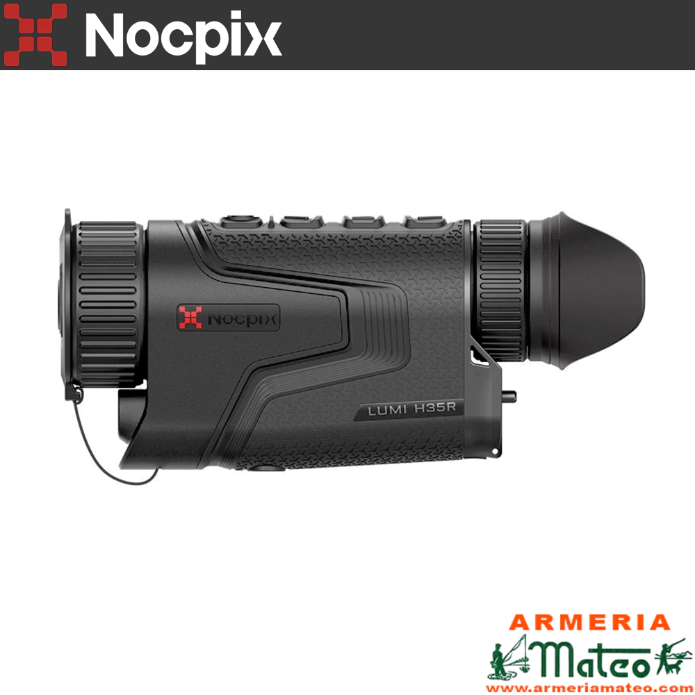 El monocular térmico Nocpix Lumi H35R incorpora un LRF (medidor de distancia) capaz de medir hasta 1200 metros. Con un sensor de 640×512 12 μm y un zoom de 2.5x a 20x, es capaz de captar imágenes hasta 1800 metros.